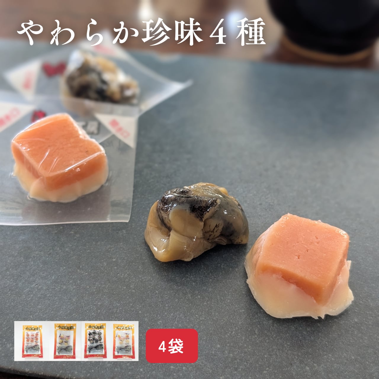 【送料無料】小樽味浪漫・やわらか珍味4種食べ比べセット ツクナカの珍味 /帆立/鮭チーズ/イカチーズ/つぶ /ギフト包装可