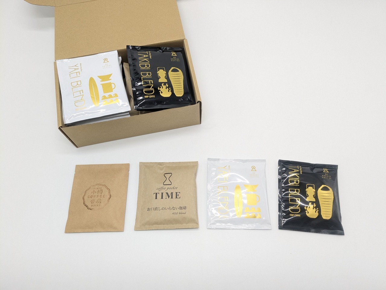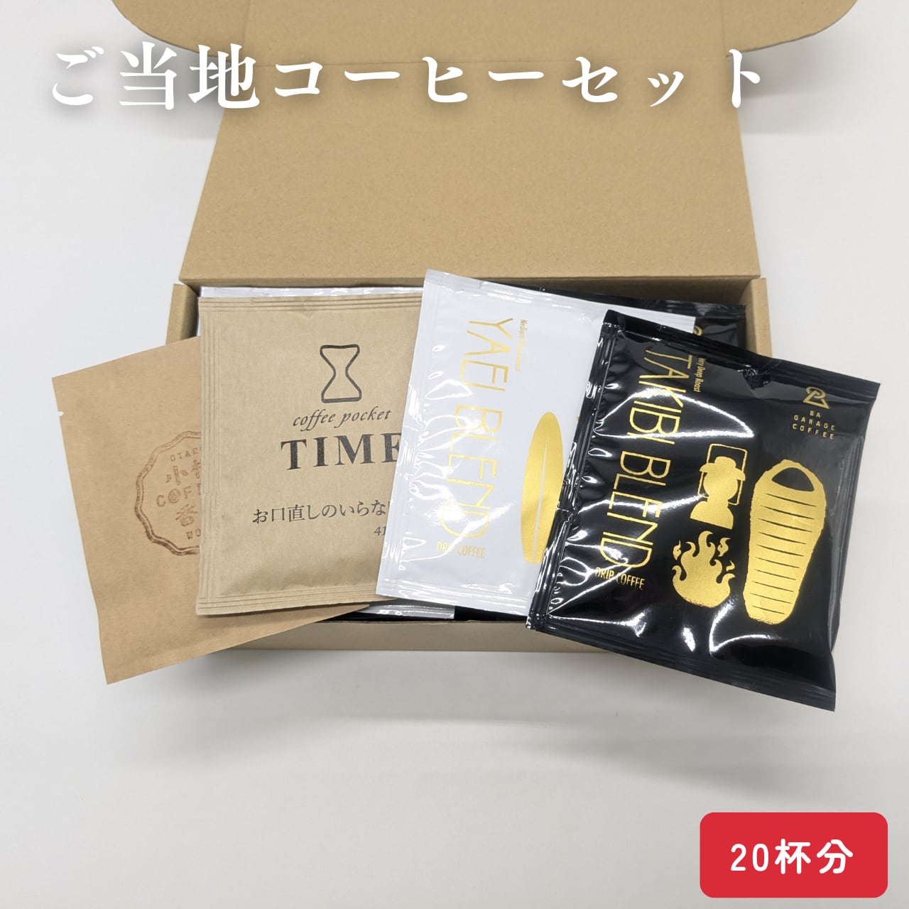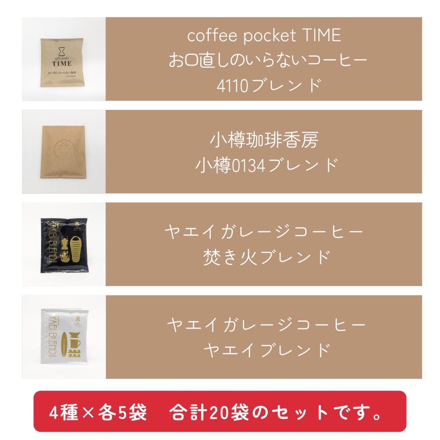 4種類のコーヒーを各5袋、たっぷり20杯分詰め合わせました。