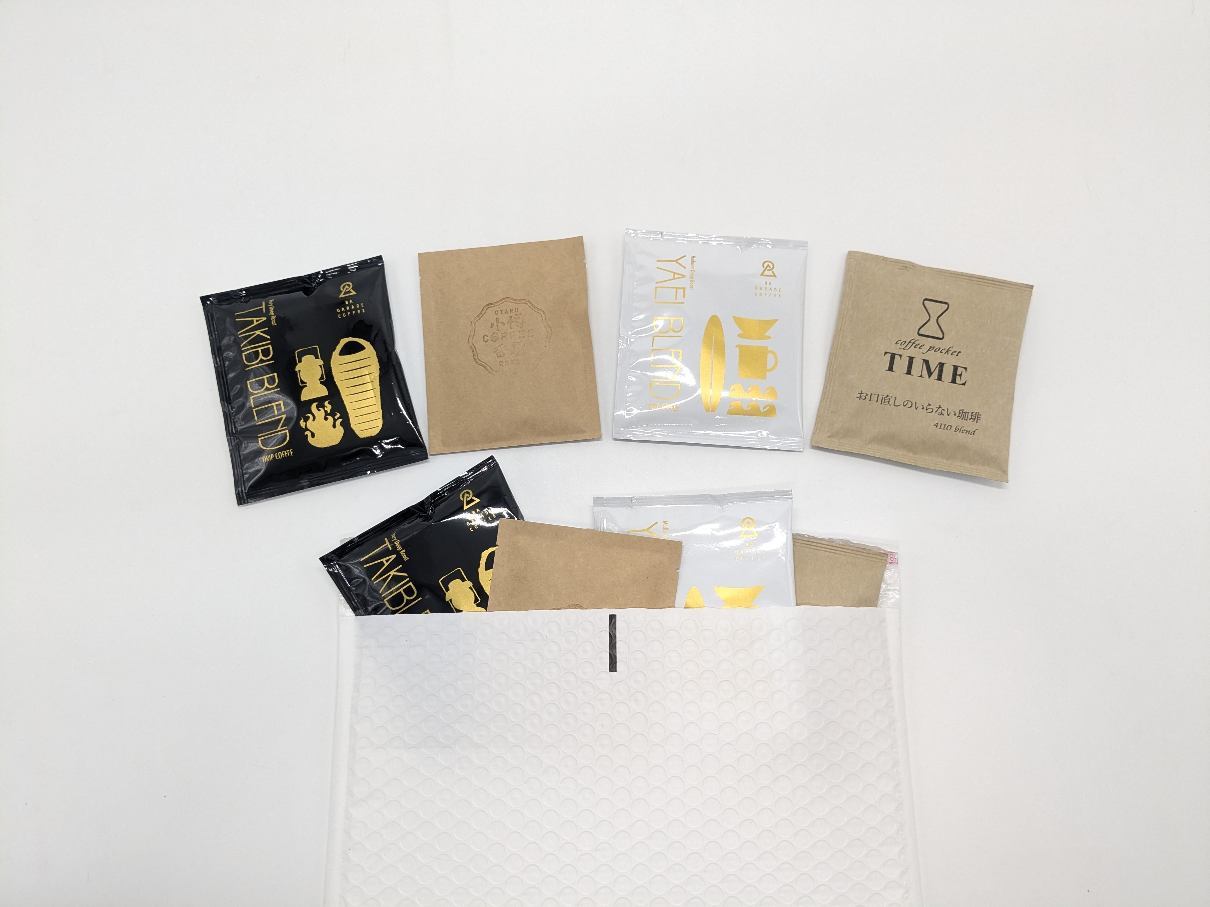 4種類のコーヒーを各5袋、たっぷり20杯分詰め合わせました。